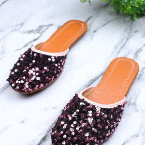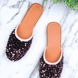 Women Purple Sequins Mules Flats