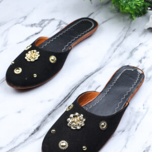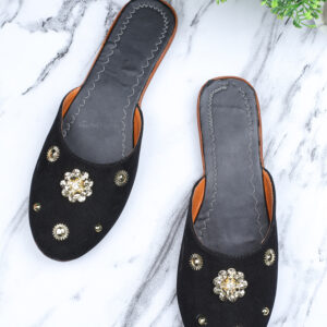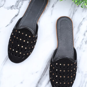 Women Black Embellished Mules Flats