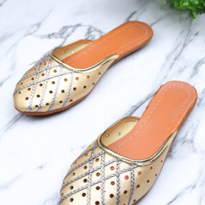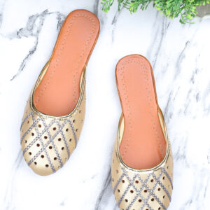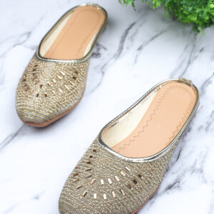 Women Gold Embellished Mules Flats
