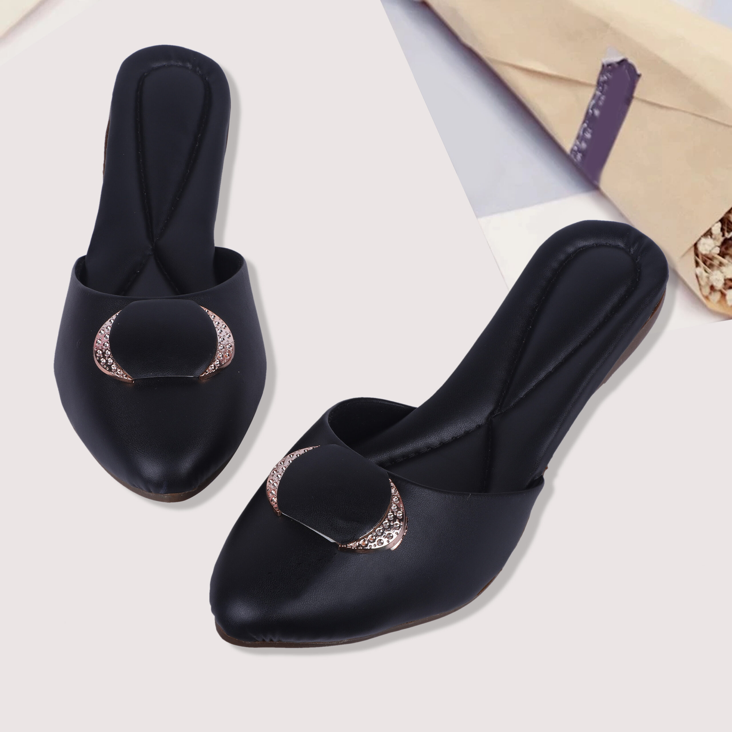 Women Black Mules Flats