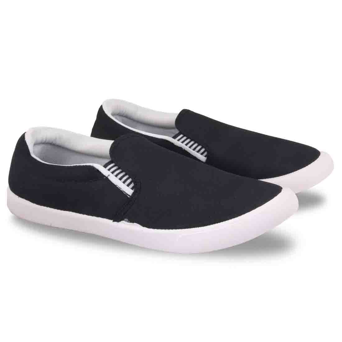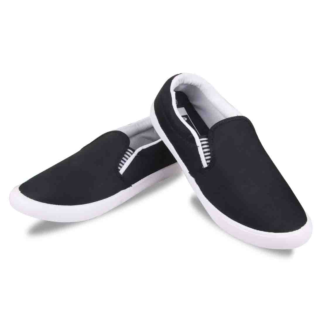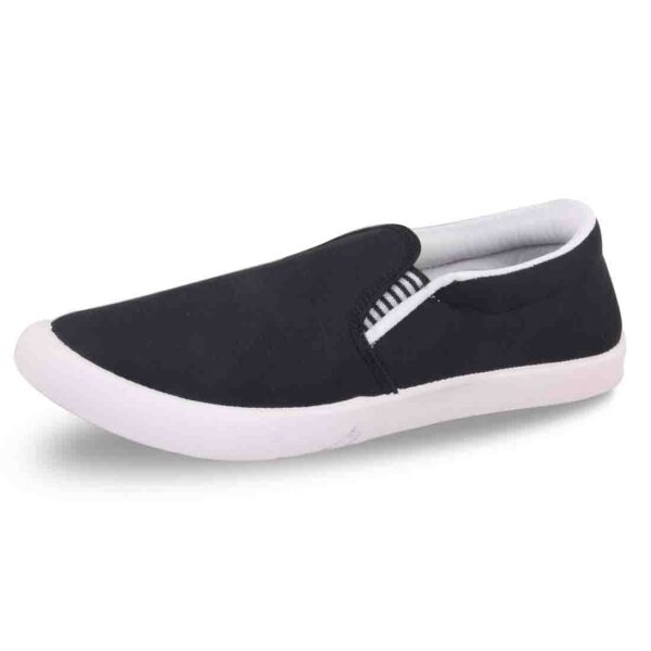 A pair of black denim loafers ,has regular styling,