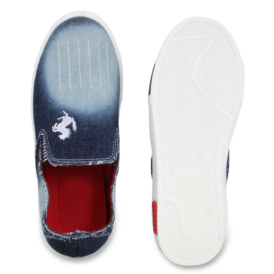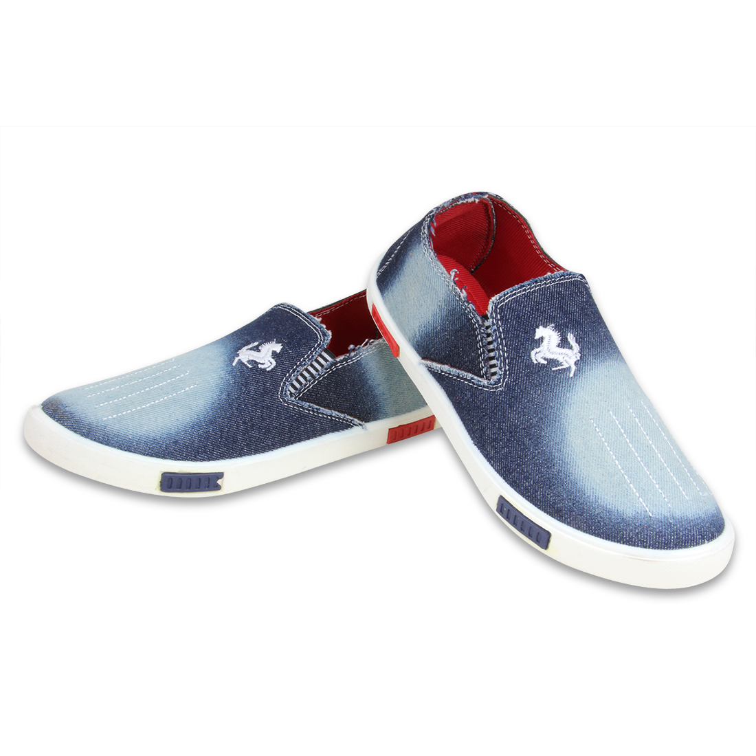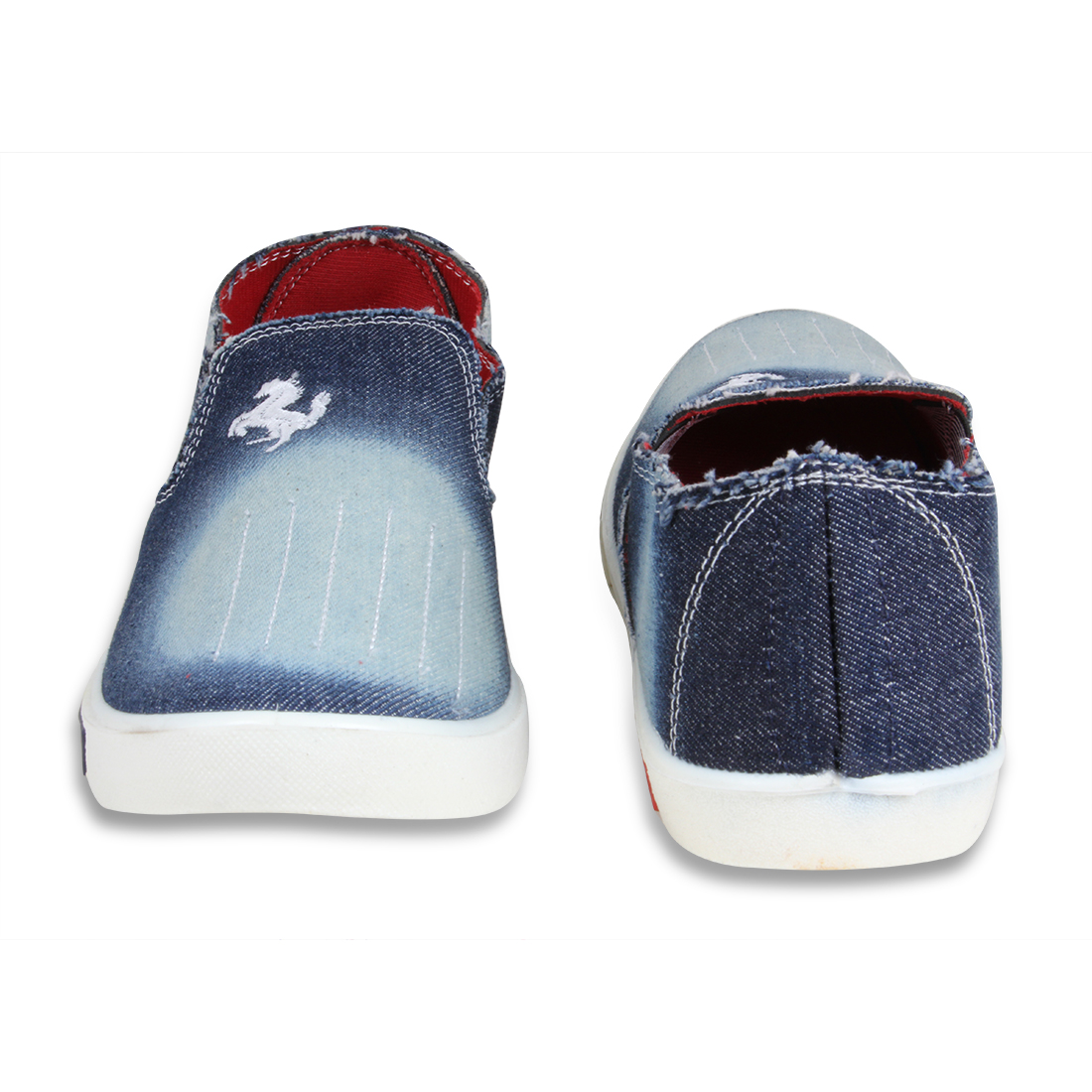 A pair of black denim loafers ,has regular styling,