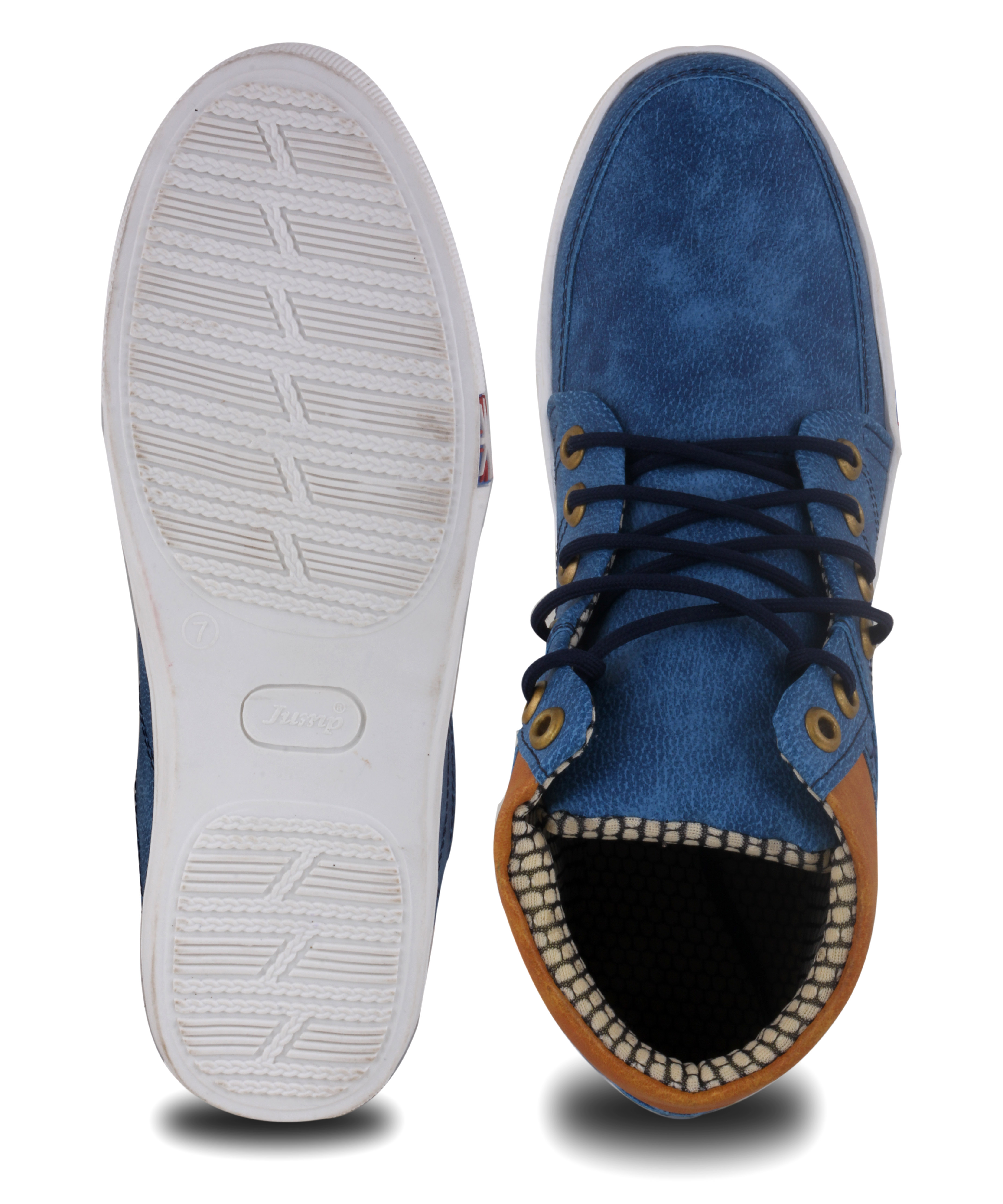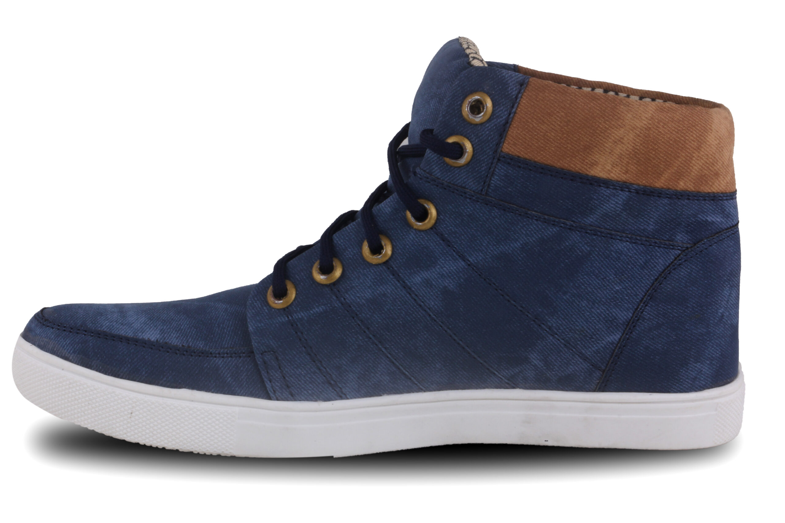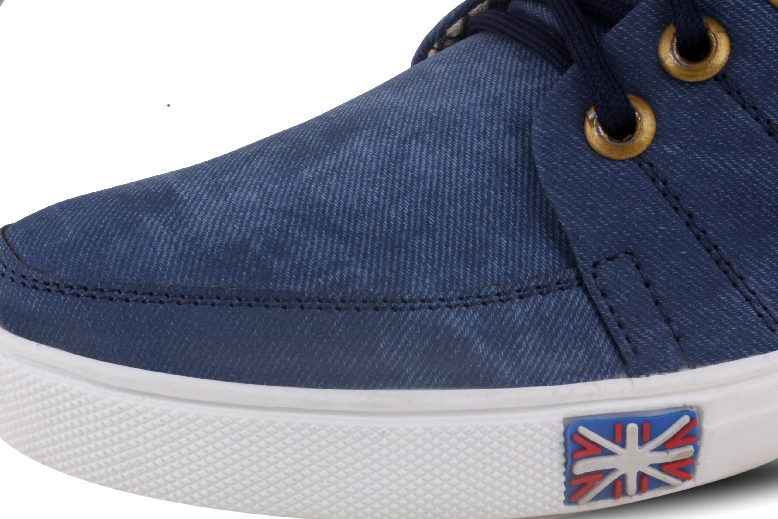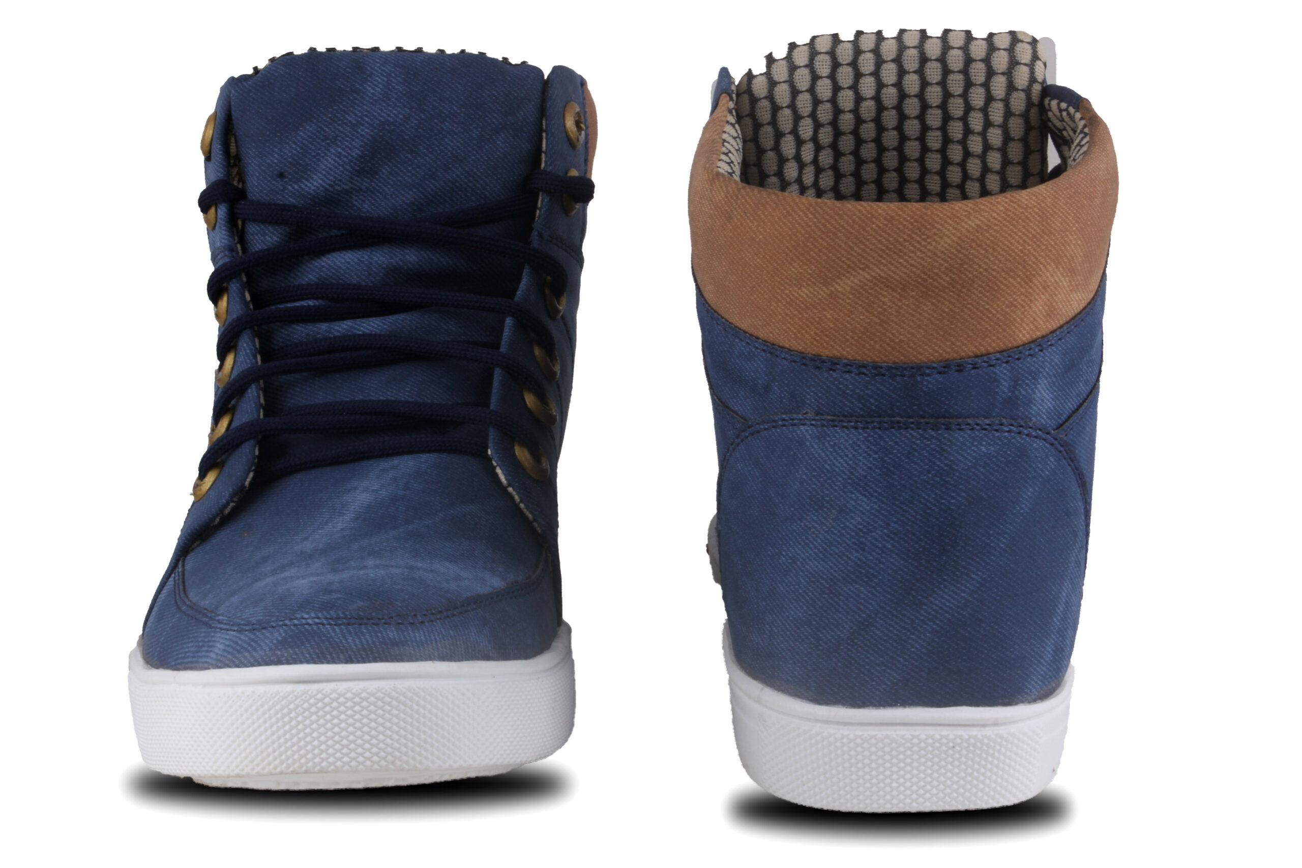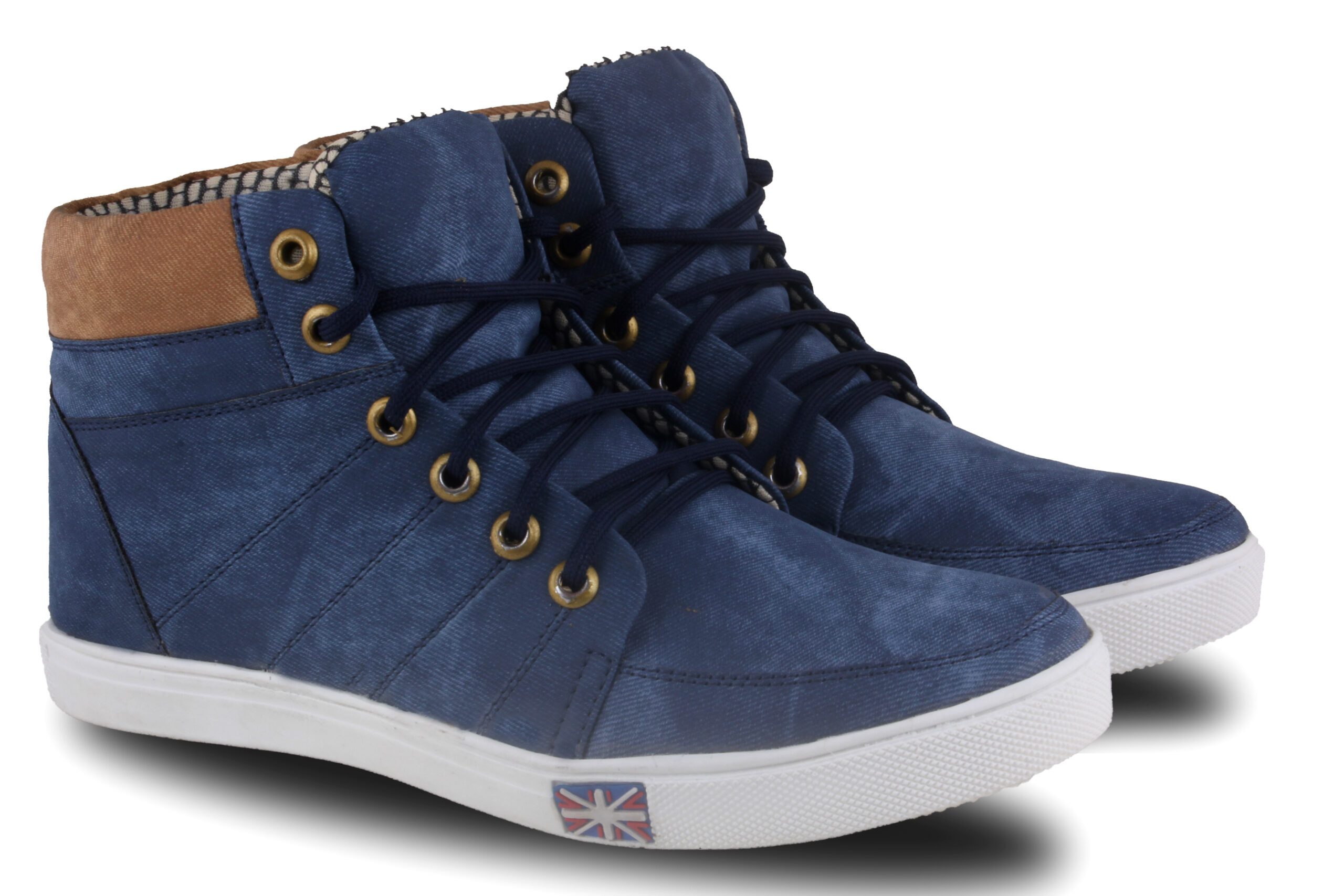 A pair of round toe navy blue high lace-up shoes ,has regular styling,