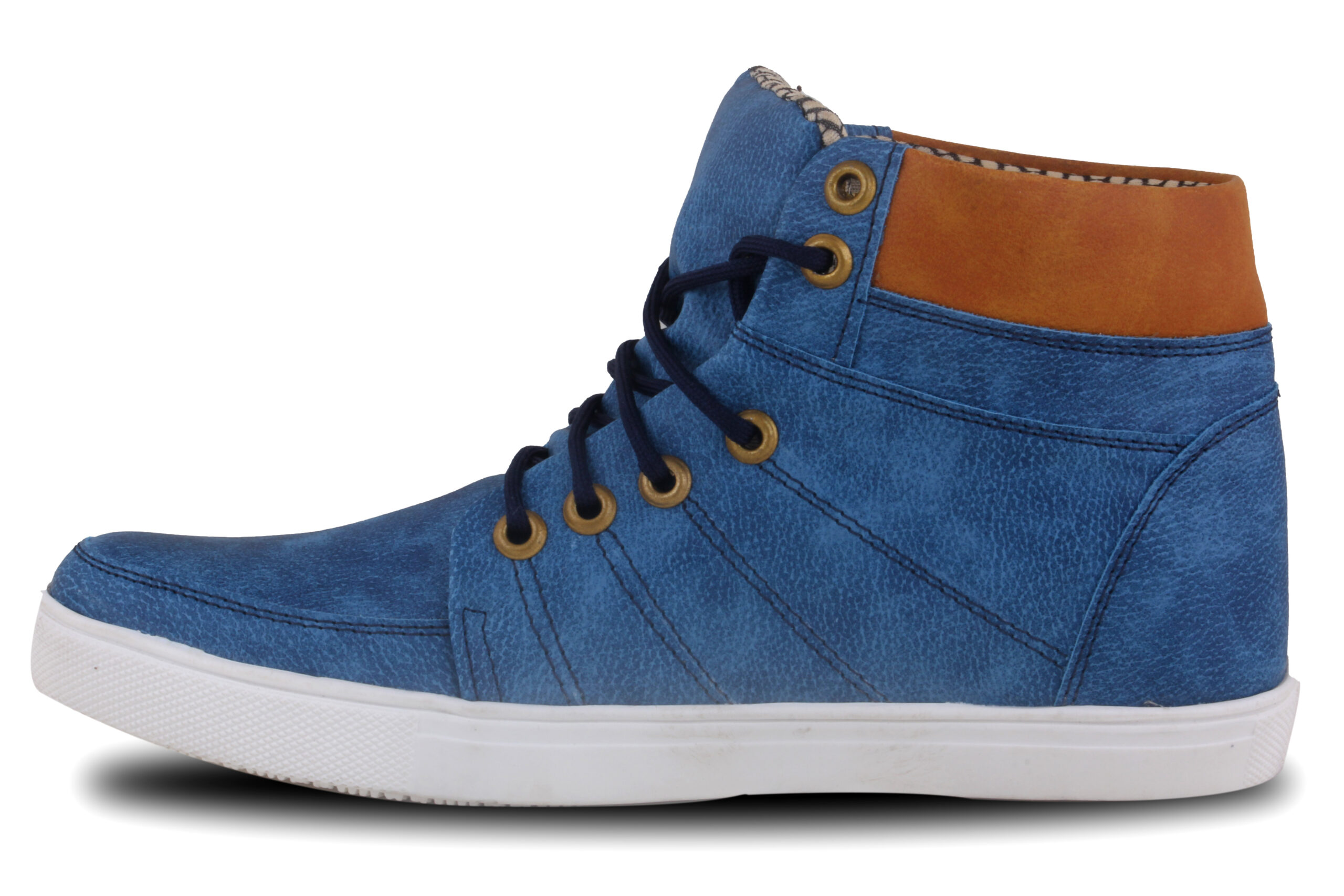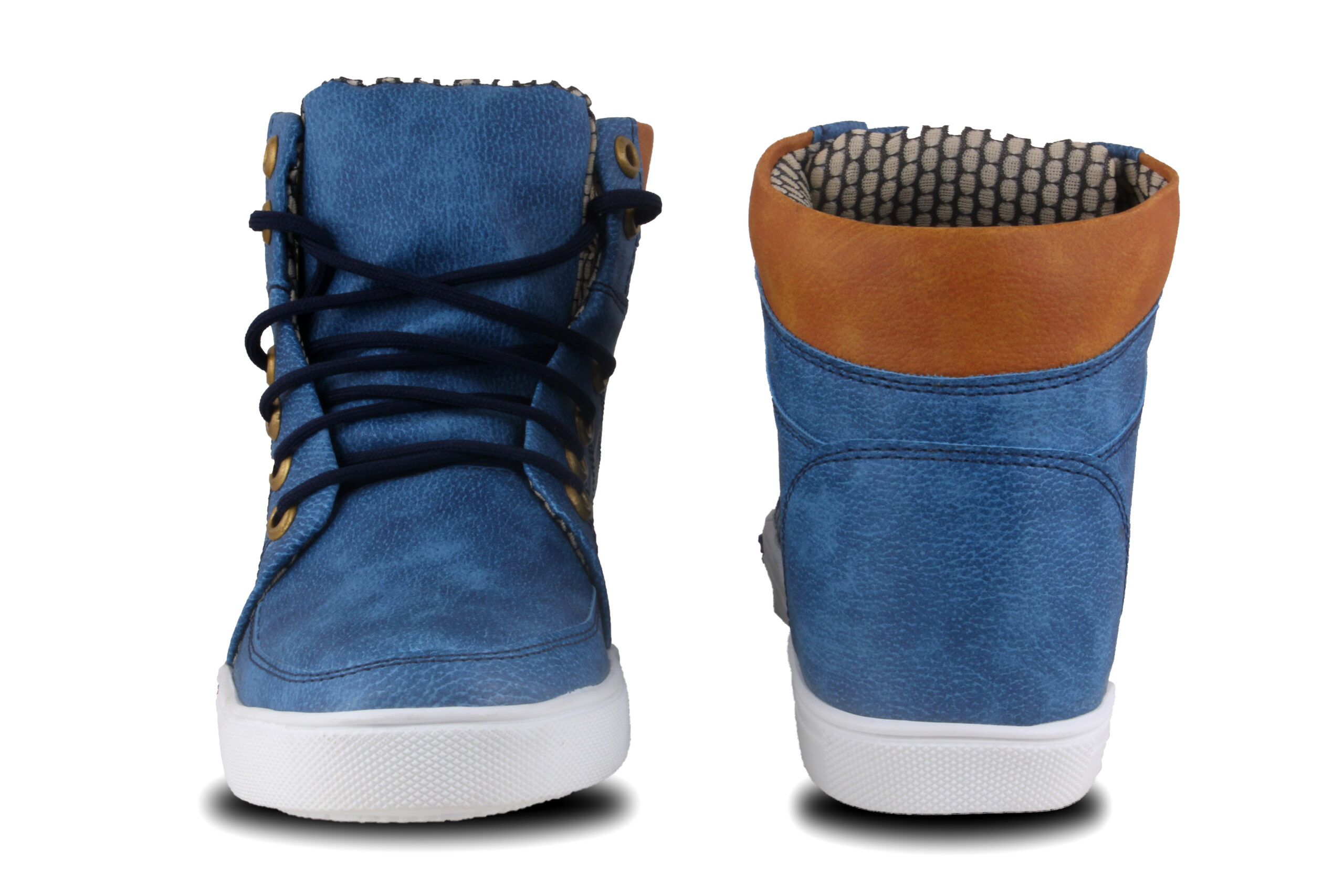 A pair of round toe sky blue high lace-up shoes ,has regular styling,