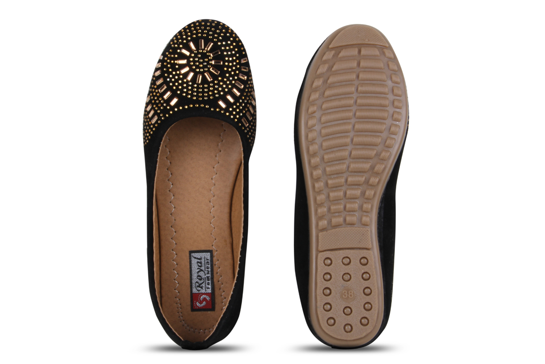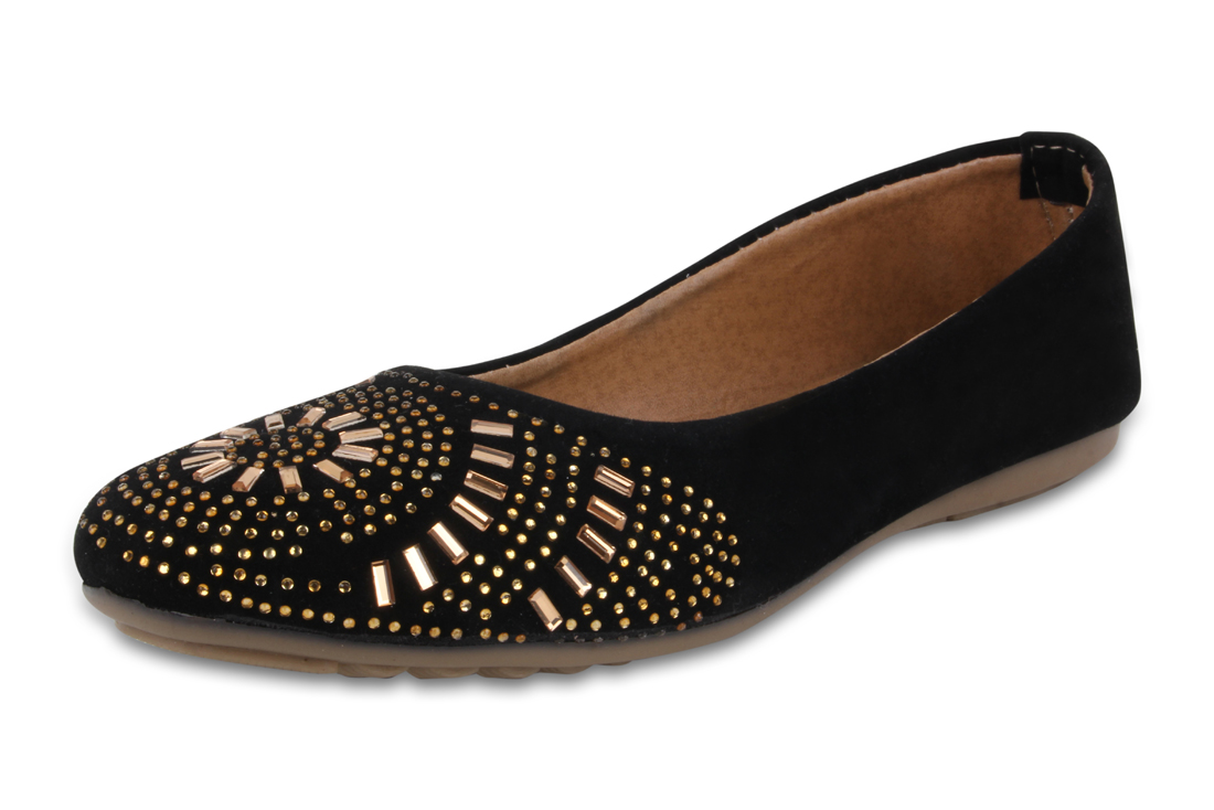 Women Black Embellished Ballerinas