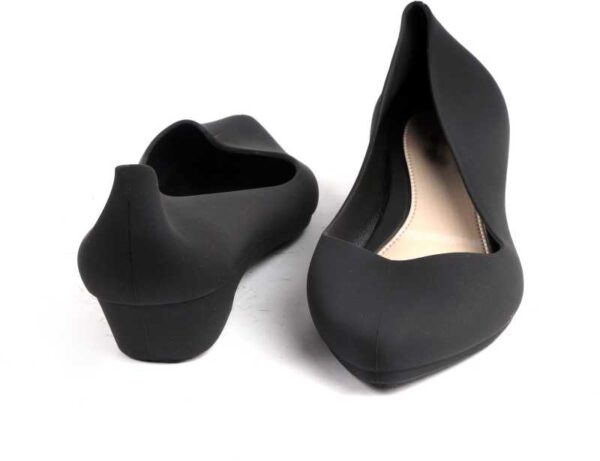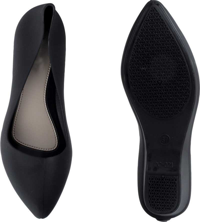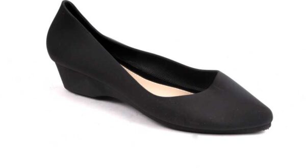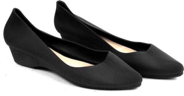 A pair of black bellies Upper Material: synthetic Cushioned footbed Textured and patterned outsole