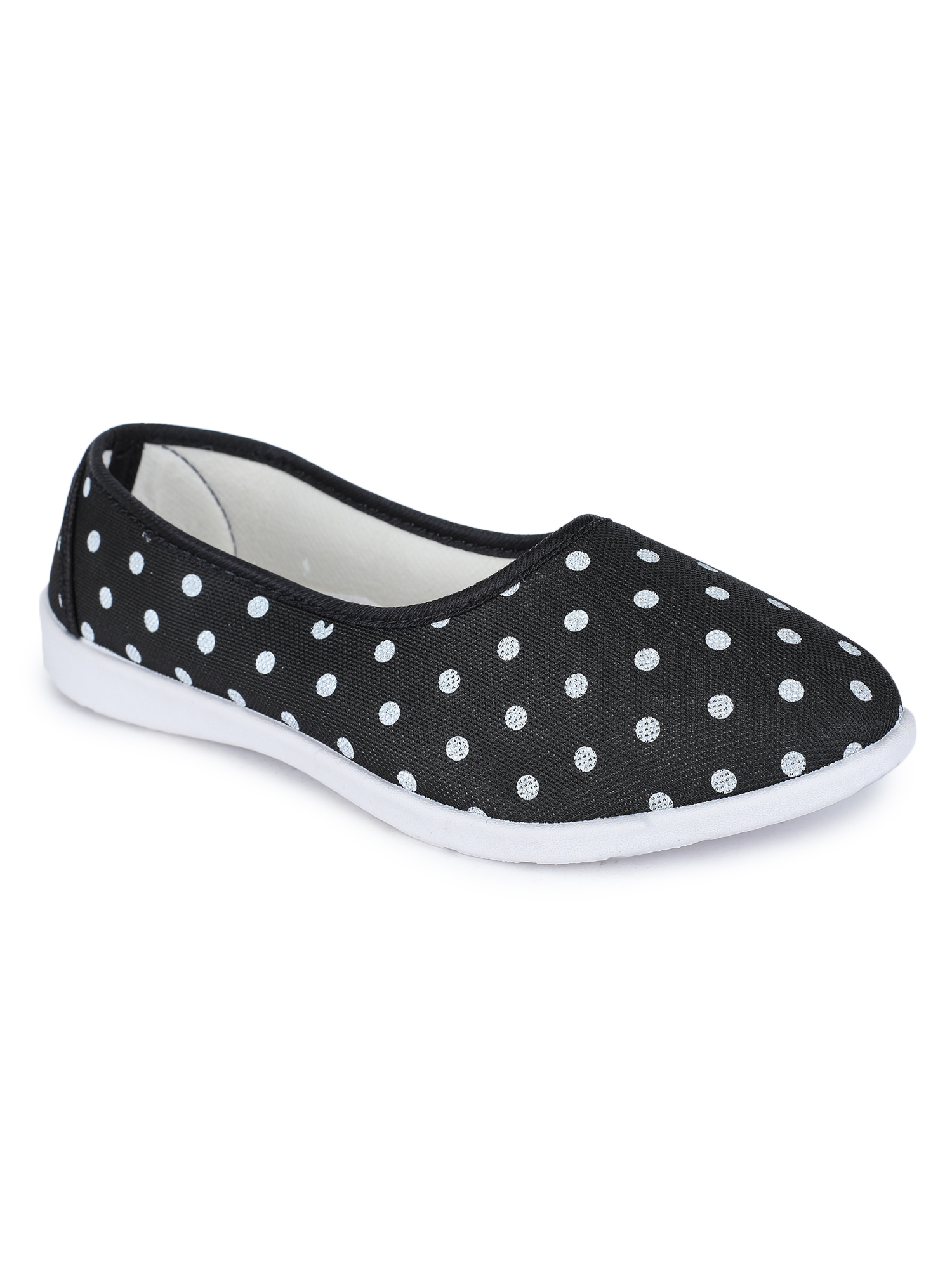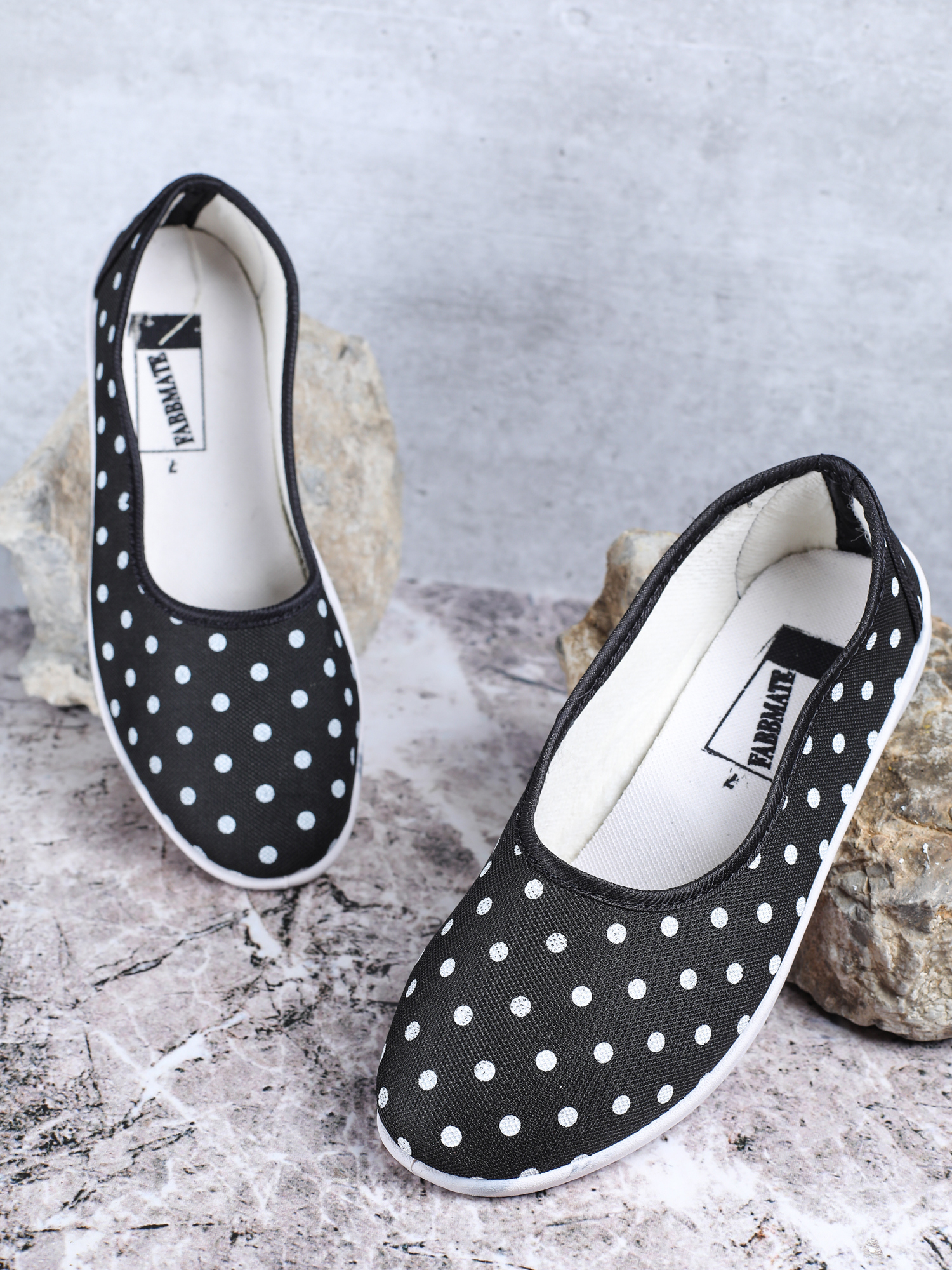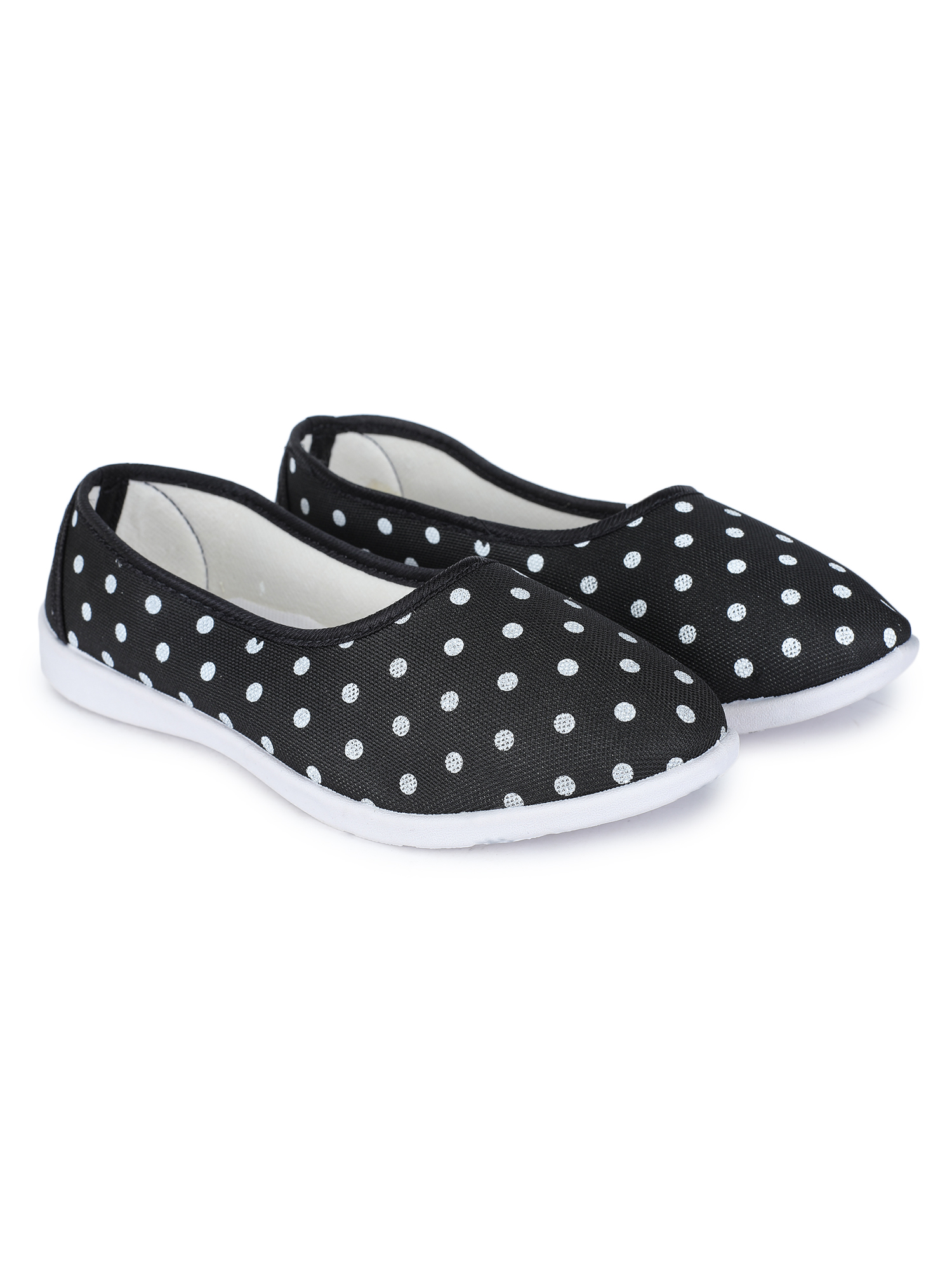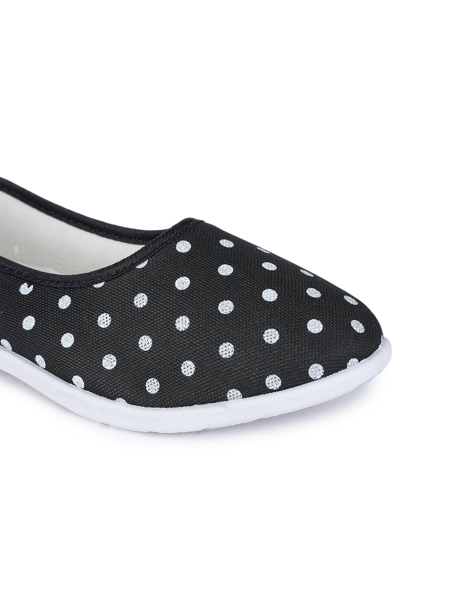 A pair of round-toe ballerinas, has regular styling, slip-on detail