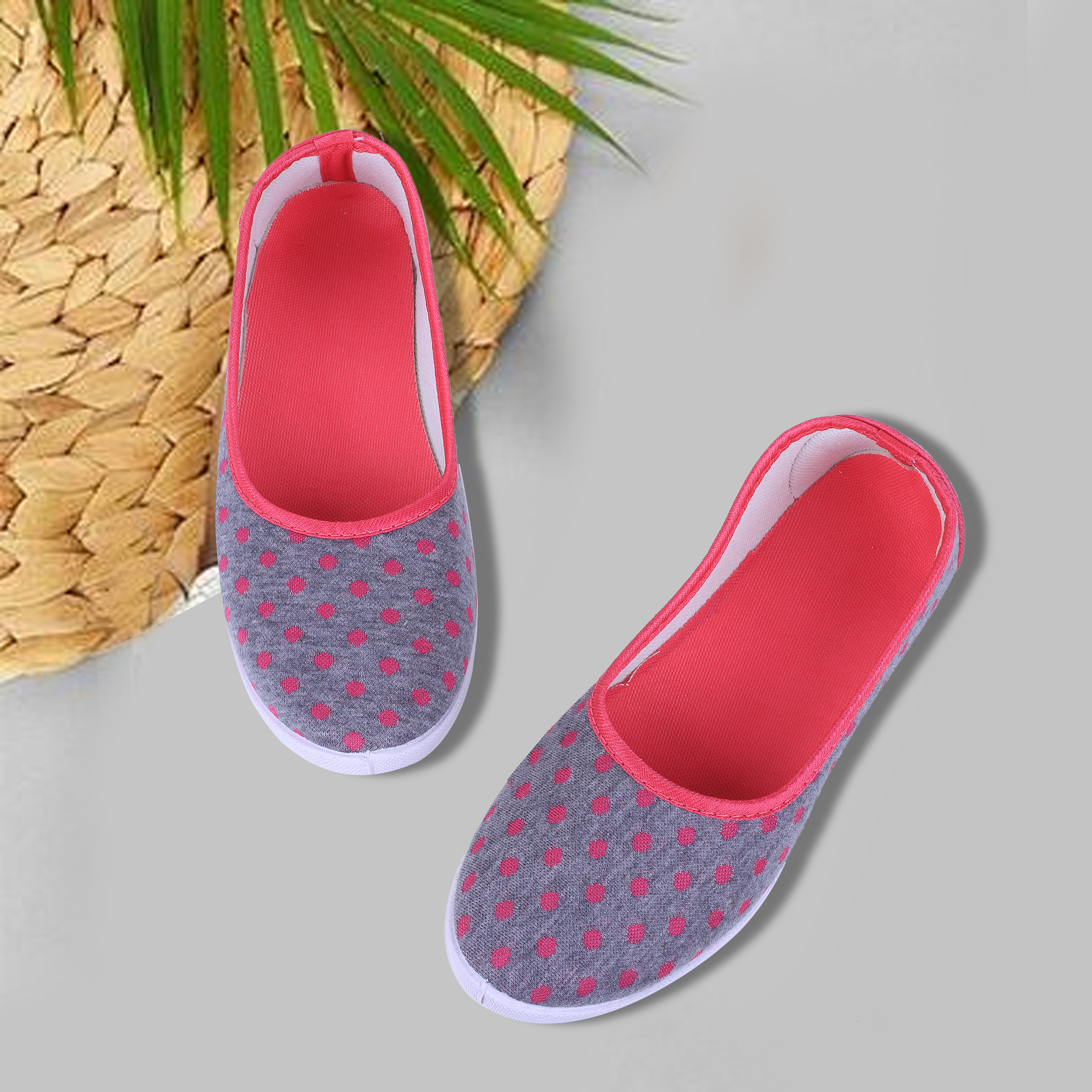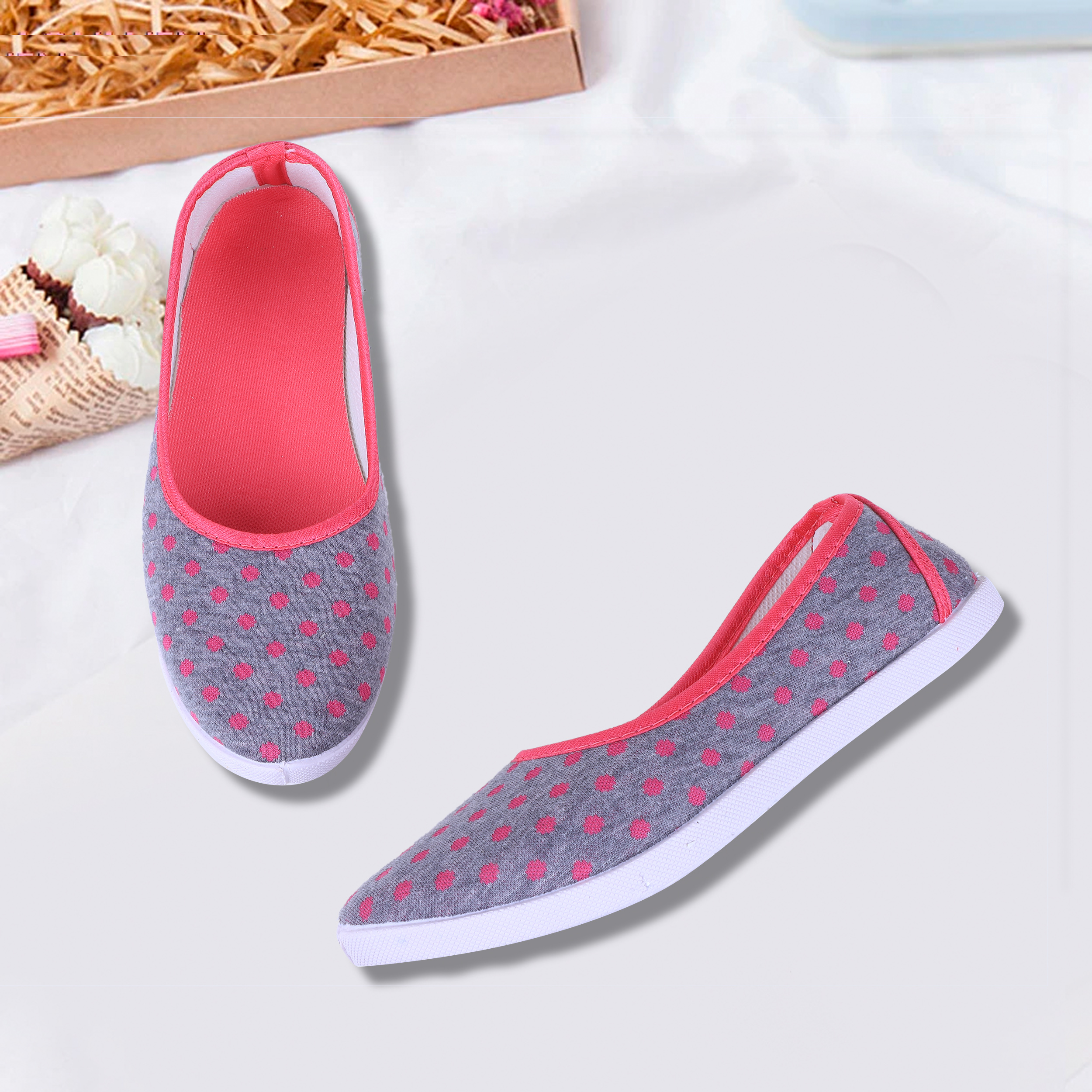 A pair of round-toe ballerinas, has regular styling, slip-on detail