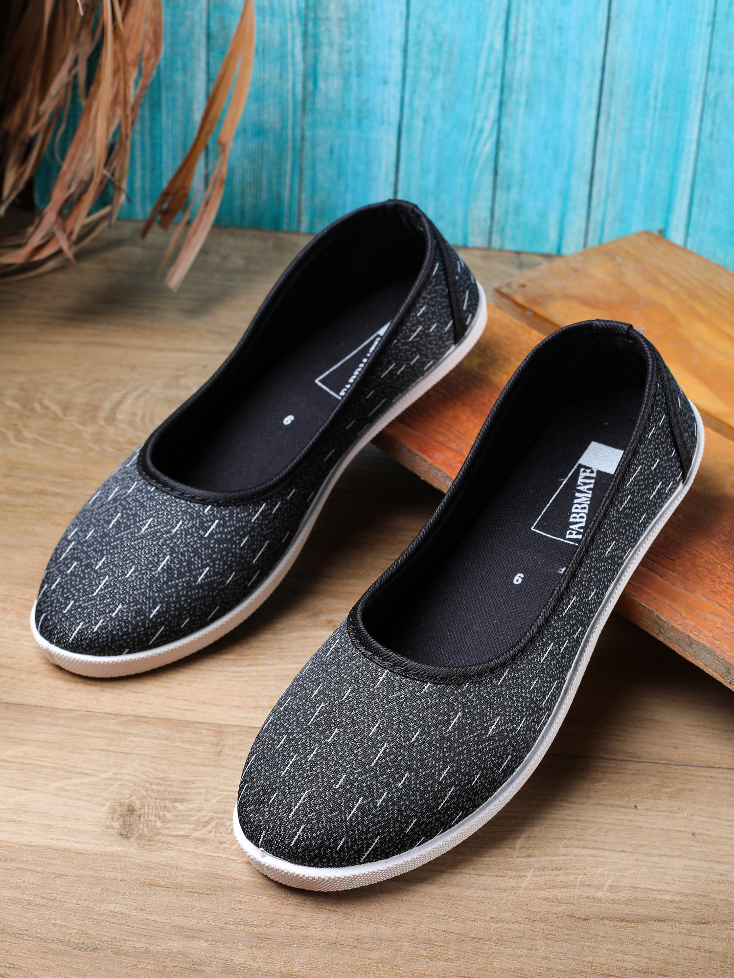 A pair of round-toe ballerinas, has regular styling, slip-on detail