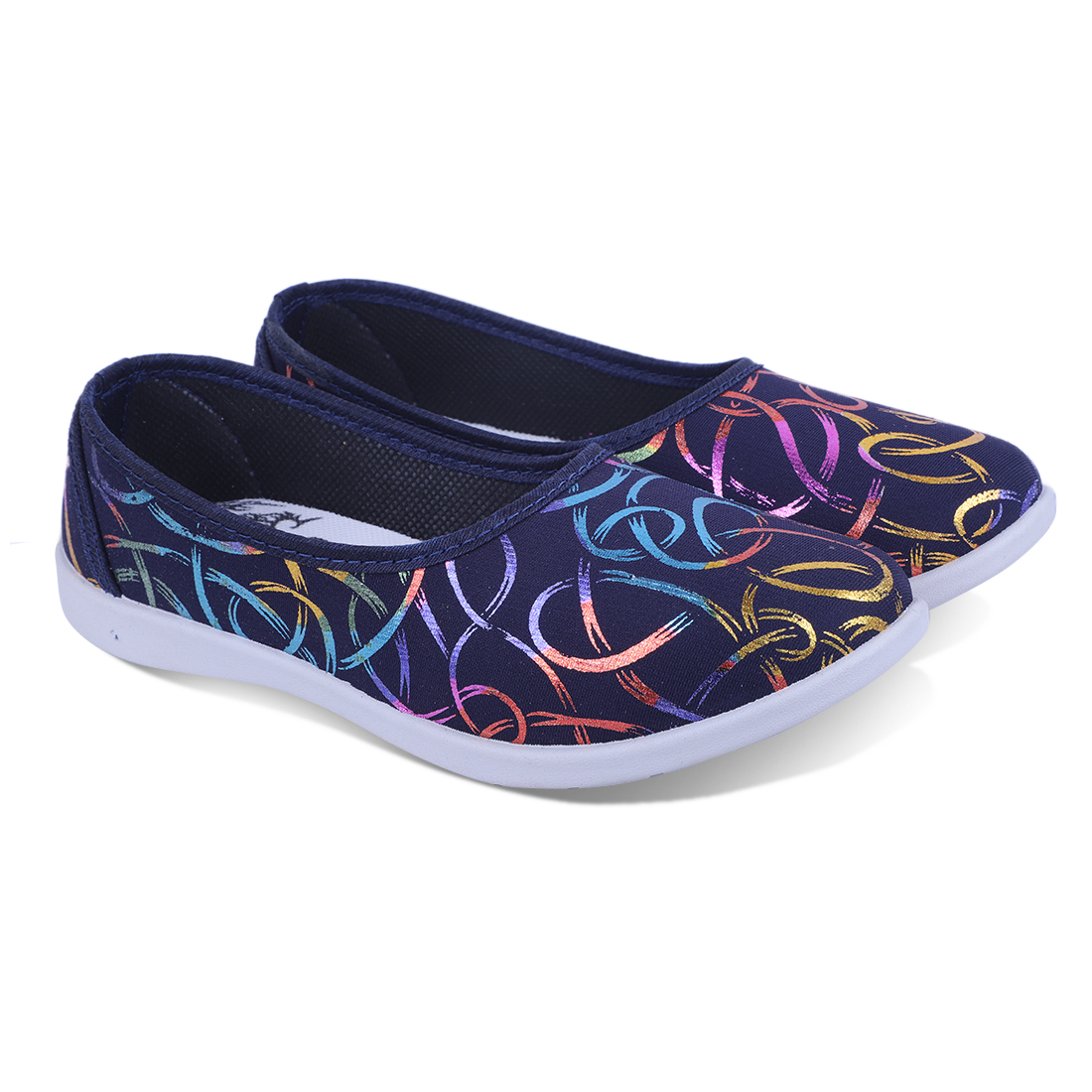 A pair of round-toe ballerinas, has regular styling, slip-on detail