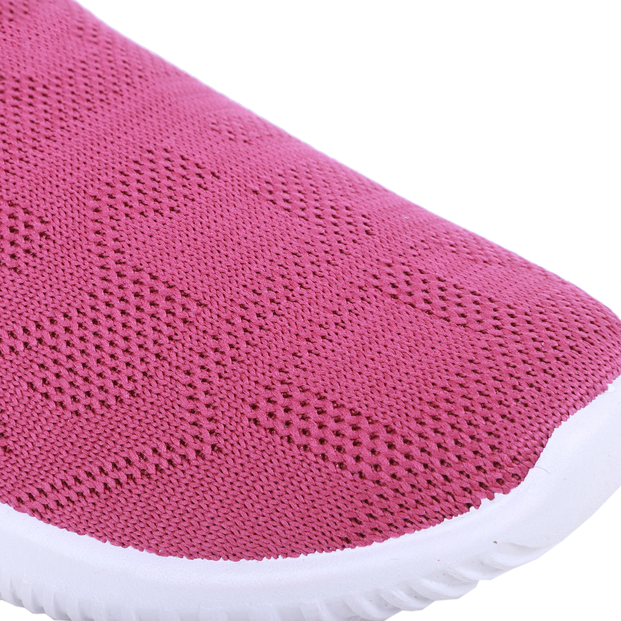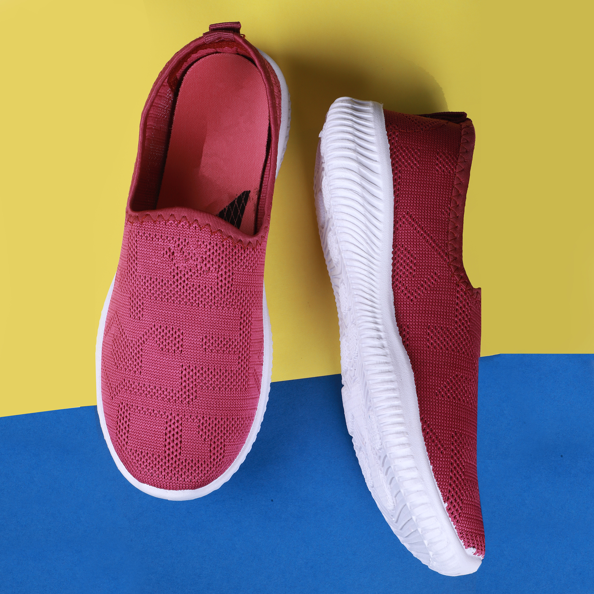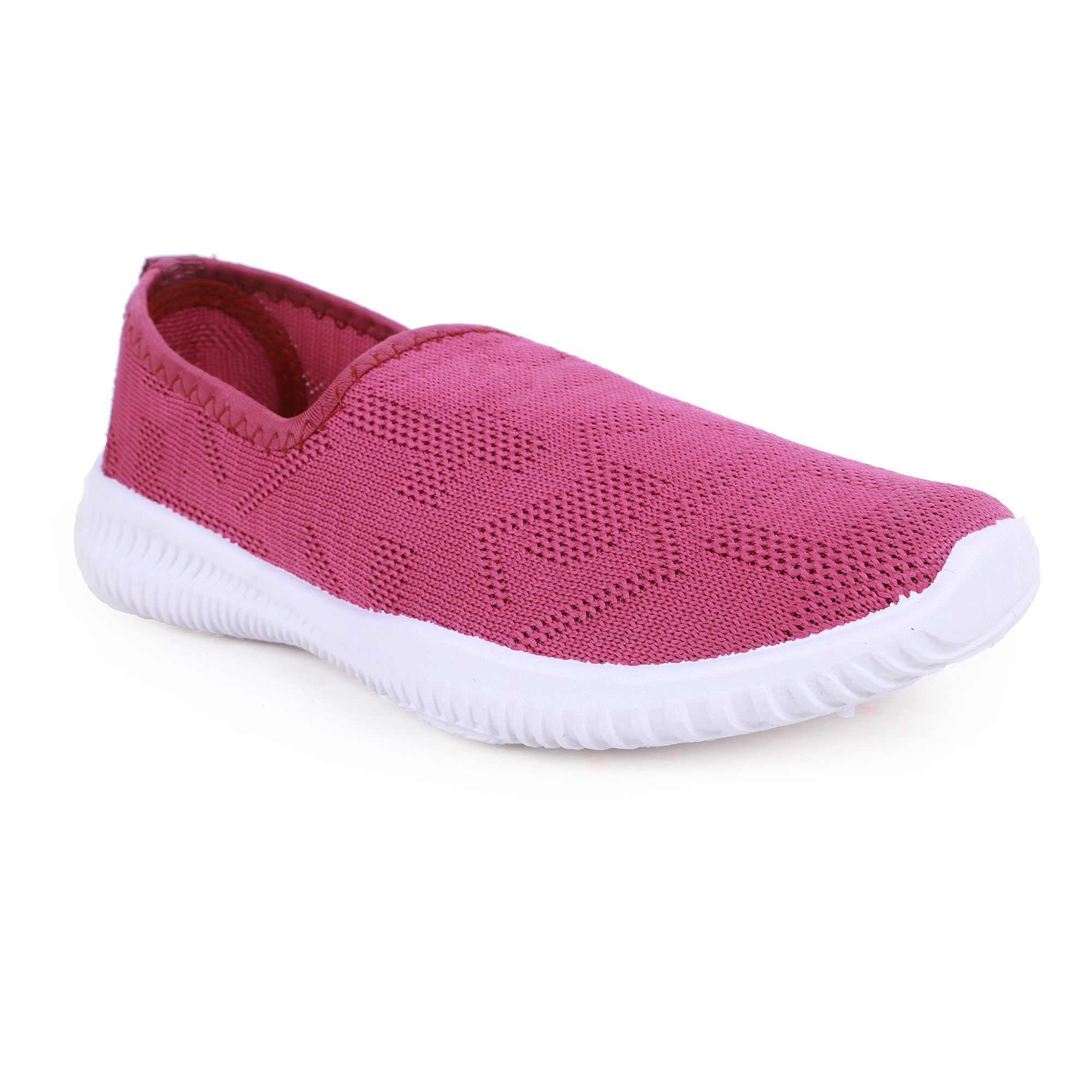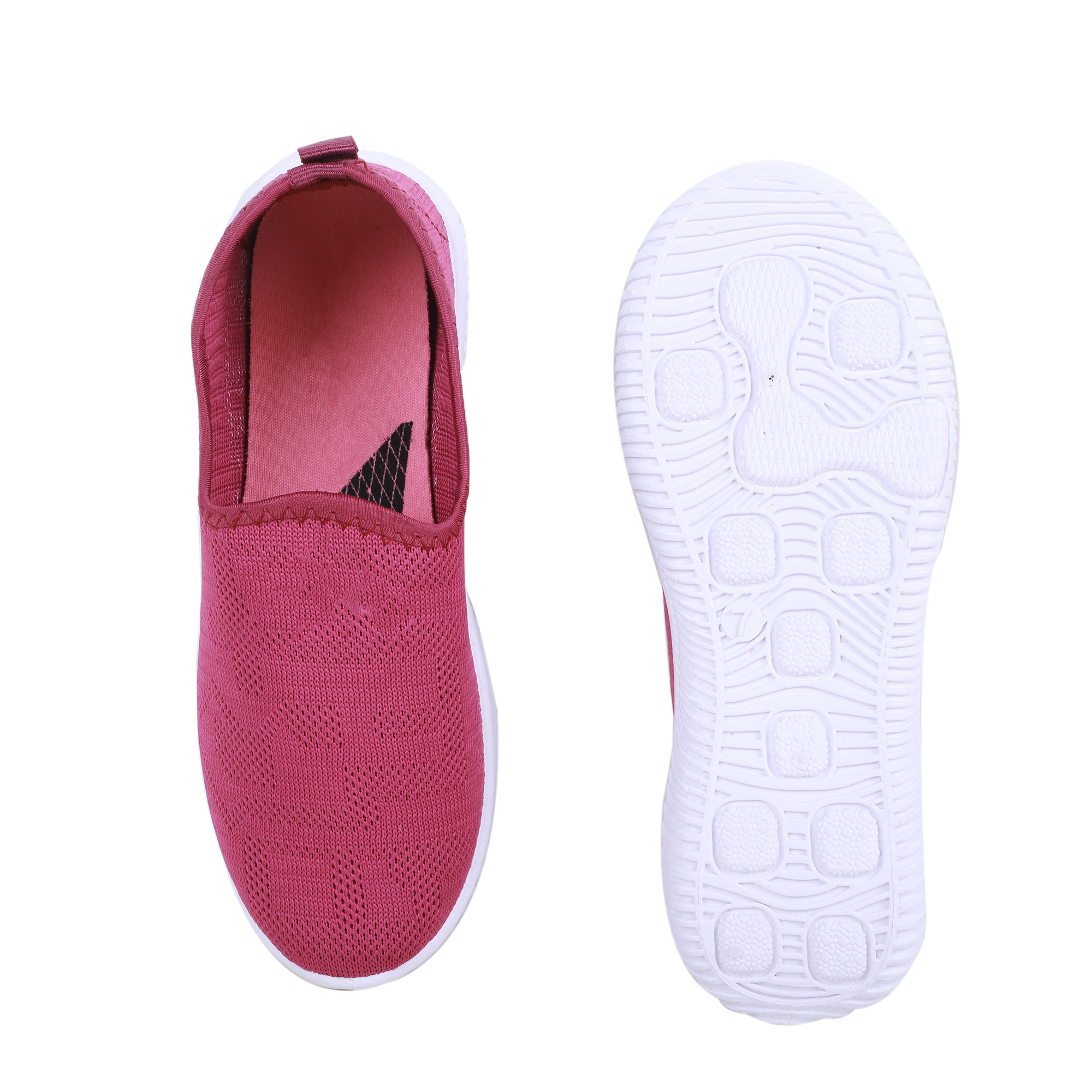 A pair of round toe pink slip-on sneakers ,has regular styling,
