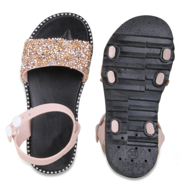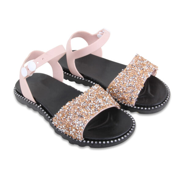 A pair of open toe flats, has regular styling and Velcro detail