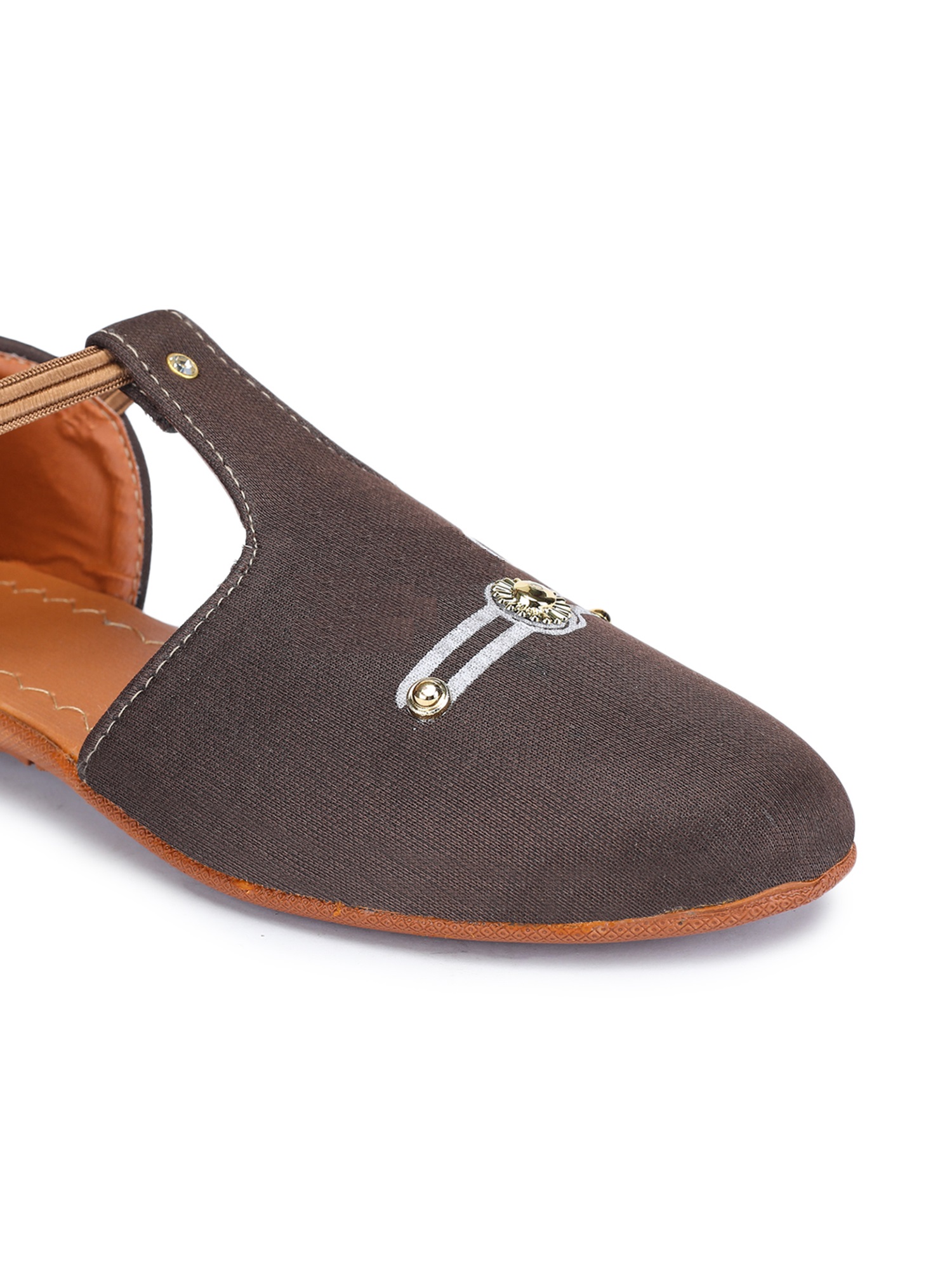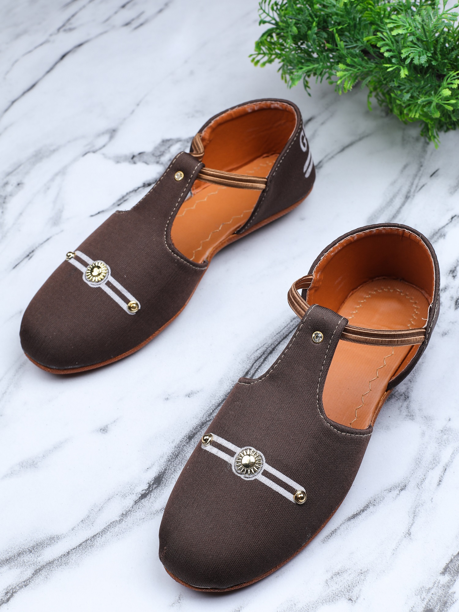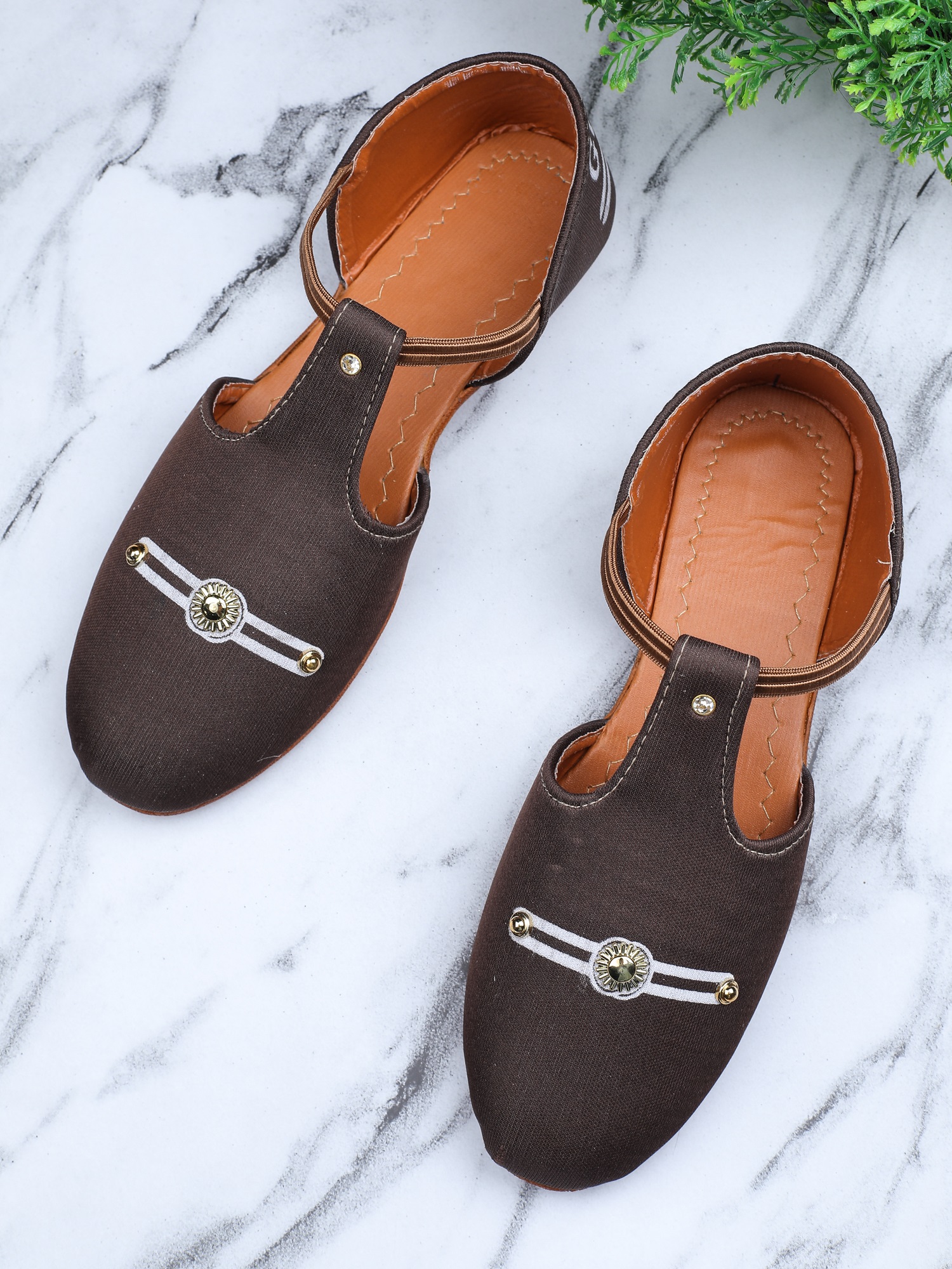 A pair of flats, has regular styling and Velcro detail
