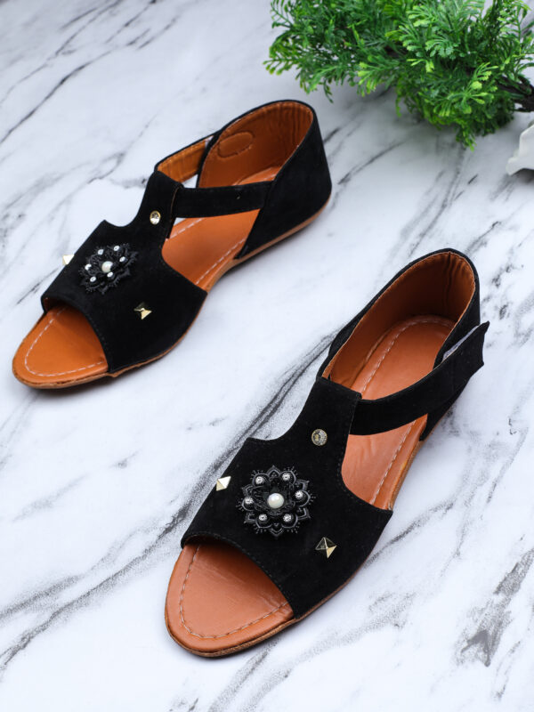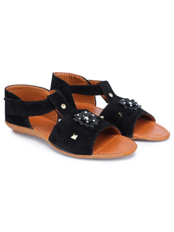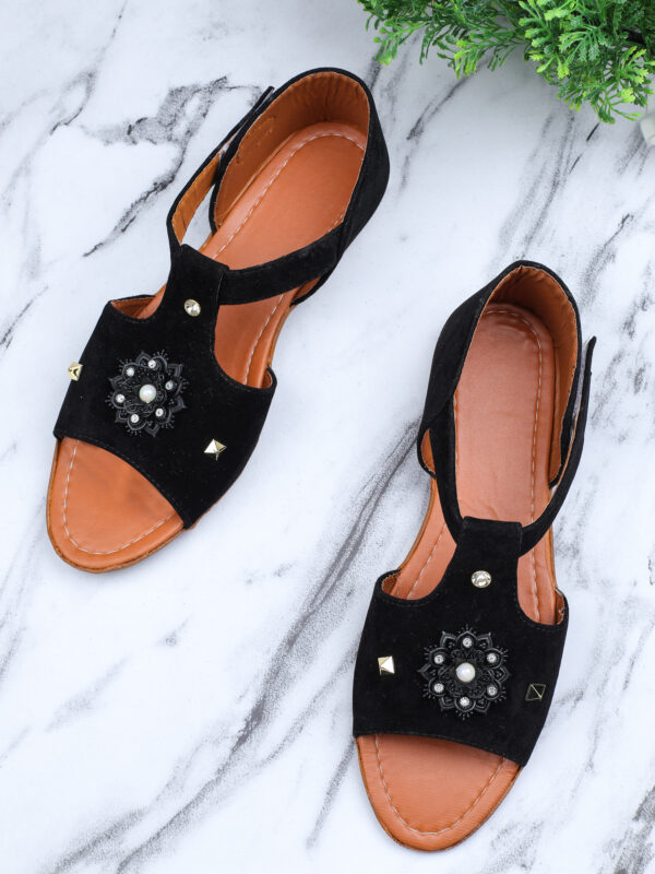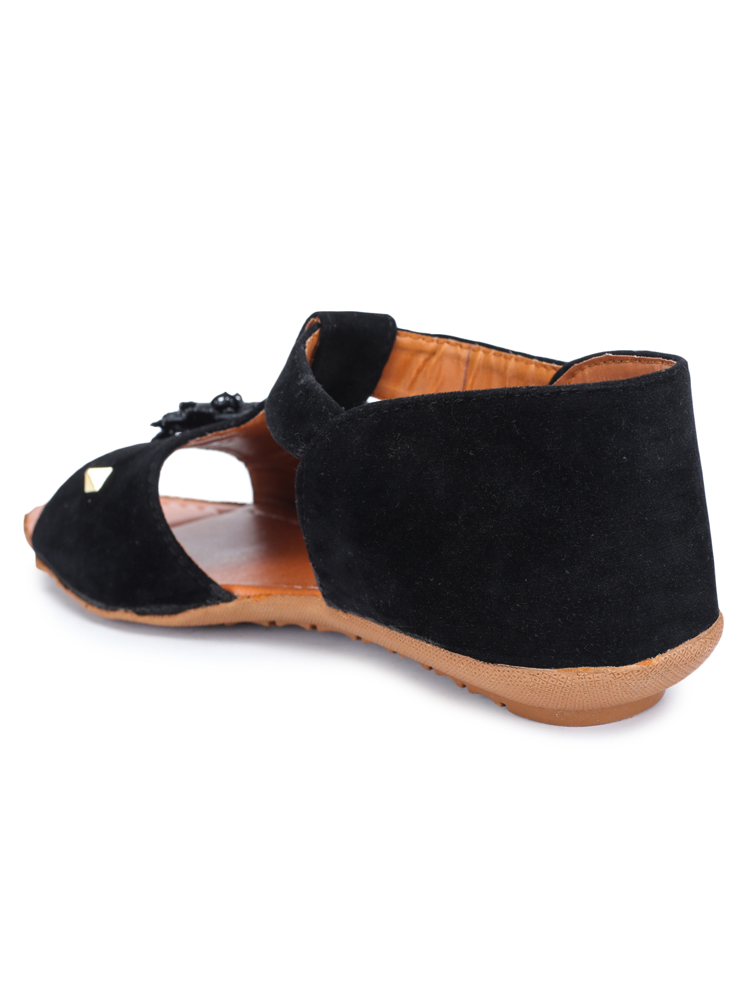 A pair of flats, has regular styling and Velcro detail